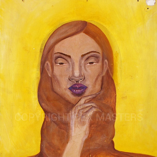 Living and working in the heart of Newcastle, Bex Masters is a Scottish oil painter whose fantastical portraits on reclaimed wood combine themes of womanhood, concealment and fantasy.